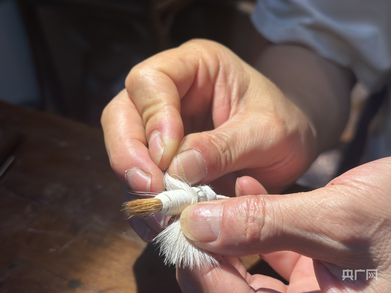 今年71岁的周鹏程生于周坊村一户毛笔制作世家,8岁学习制笔,至今仍每天做笔超10小时。常有来自全国各地的书法家登门拜访,周鹏程便根据他们擅长的字体和用笔习惯,琢磨出专属配方后定制毛笔。没有万能的搭配“公式”,只能靠悟性终身研习。