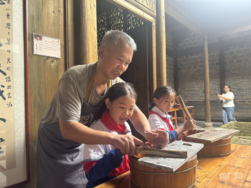 在周坊村的“中国毛笔第一村书画体验馆”,一批研学的孩子沉浸在“水盆”工艺的体验中。南昌市市级非遗项目代表性传承人徐华荣做了44年毛笔,他常觉得让年轻一代了解传统的毛笔制作技艺,相比自己亲手做出多少支毛笔来,或许更有意义。